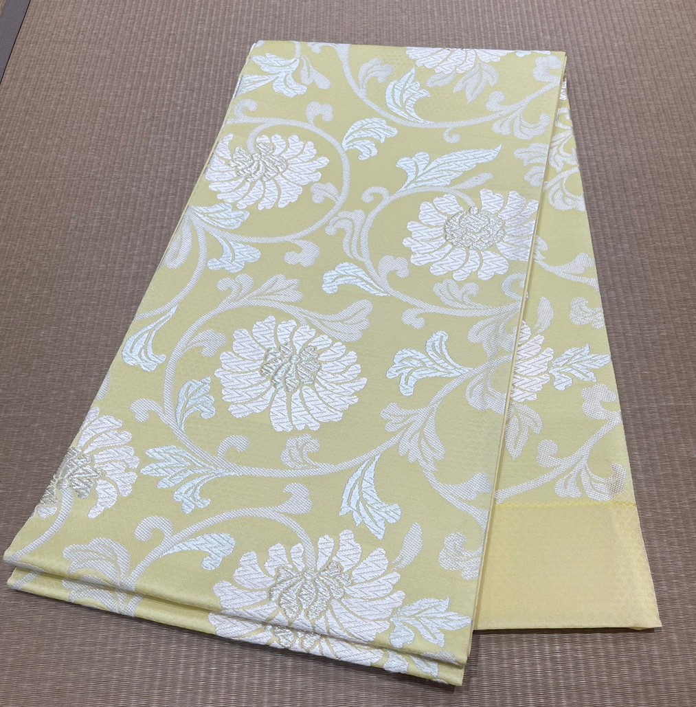 送料無料 おすすめ 【袋帯】西陣河合美術織物 唐衣正倉院 唐花文様 黄色銀 hukuroobi009 仕立て上がり価格 ¥308,000 ¥132,000(税込) 数量 この商品に関するお問い合わせ 西陣河合美術織物さんの黄色地に銀の唐花文様が見事なお品です。 卵色のような淡い黄色は優しくとても上品です。 パーティやお祝いの席にいかがでしょうか。 商品一覧 › 帯 › 袋帯 › 商品一覧 › おすすめ商品 › 商品一覧 › 帯 ›