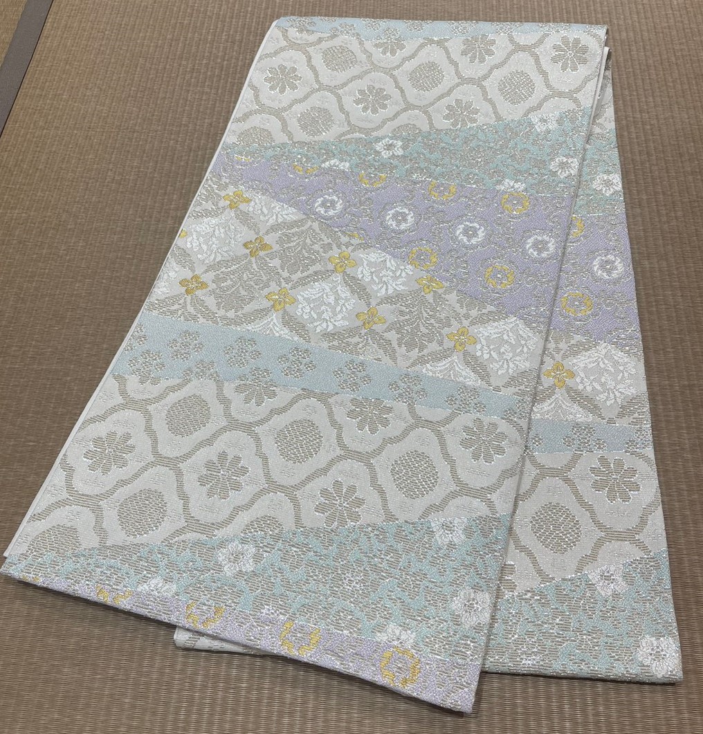 水色と紫と黄色の淡い色合いが優しい上品なお品です。