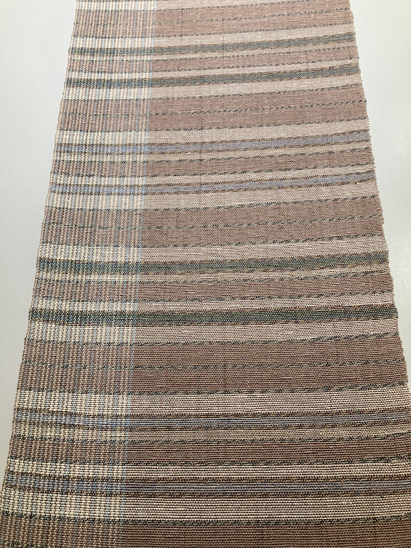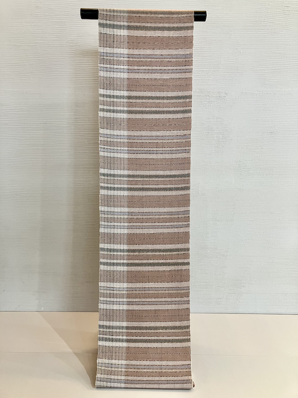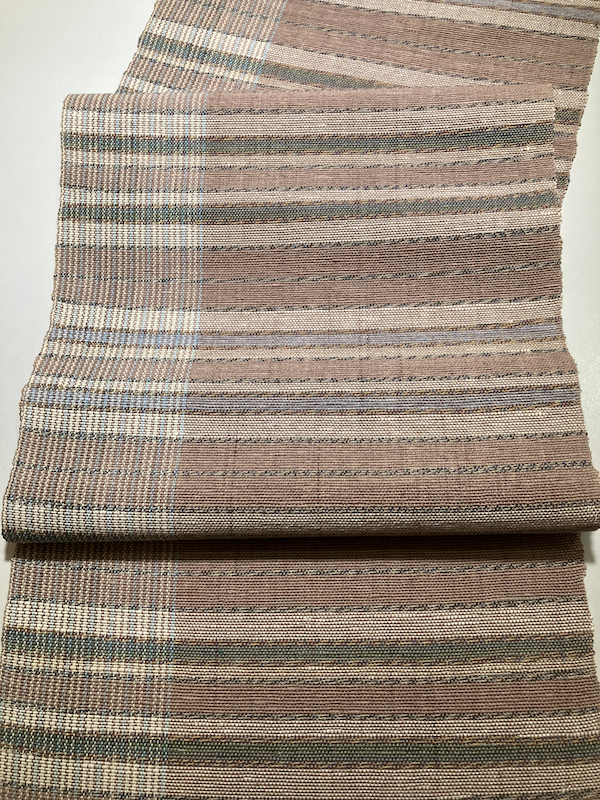 越前和紙を織り込んだ唯一無二の糸を使用し、優しい色合いの八寸帯が織り上がりました。
