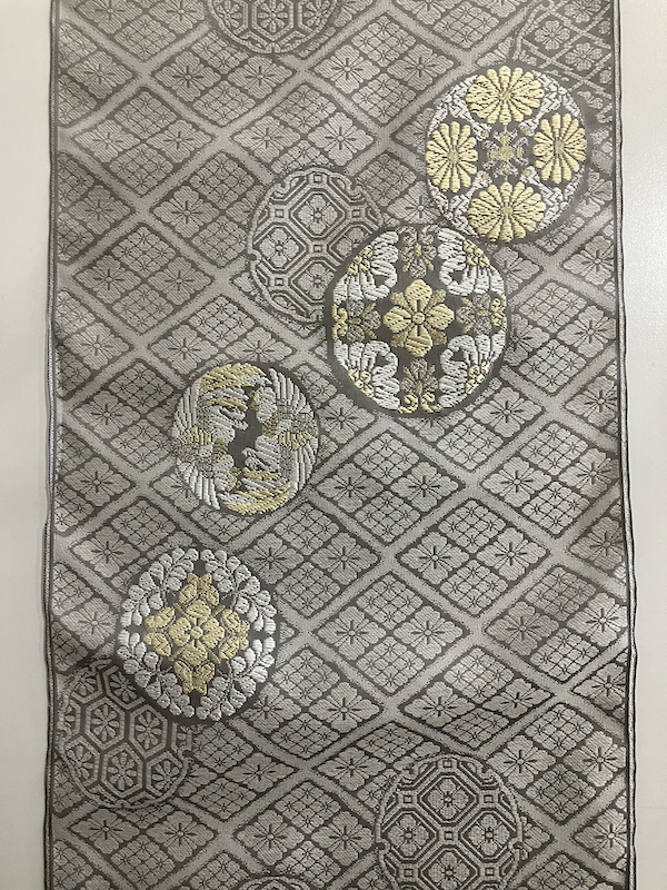 | 素材 | 絹95% ポリエステル、レーヨン、分類外繊維5% (絹以外は金銀糸部分です) |