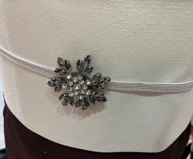 光を取り入れ美しく輝く帯留。強烈な存在感があり周囲の方を喜ばせること間違いなしです。